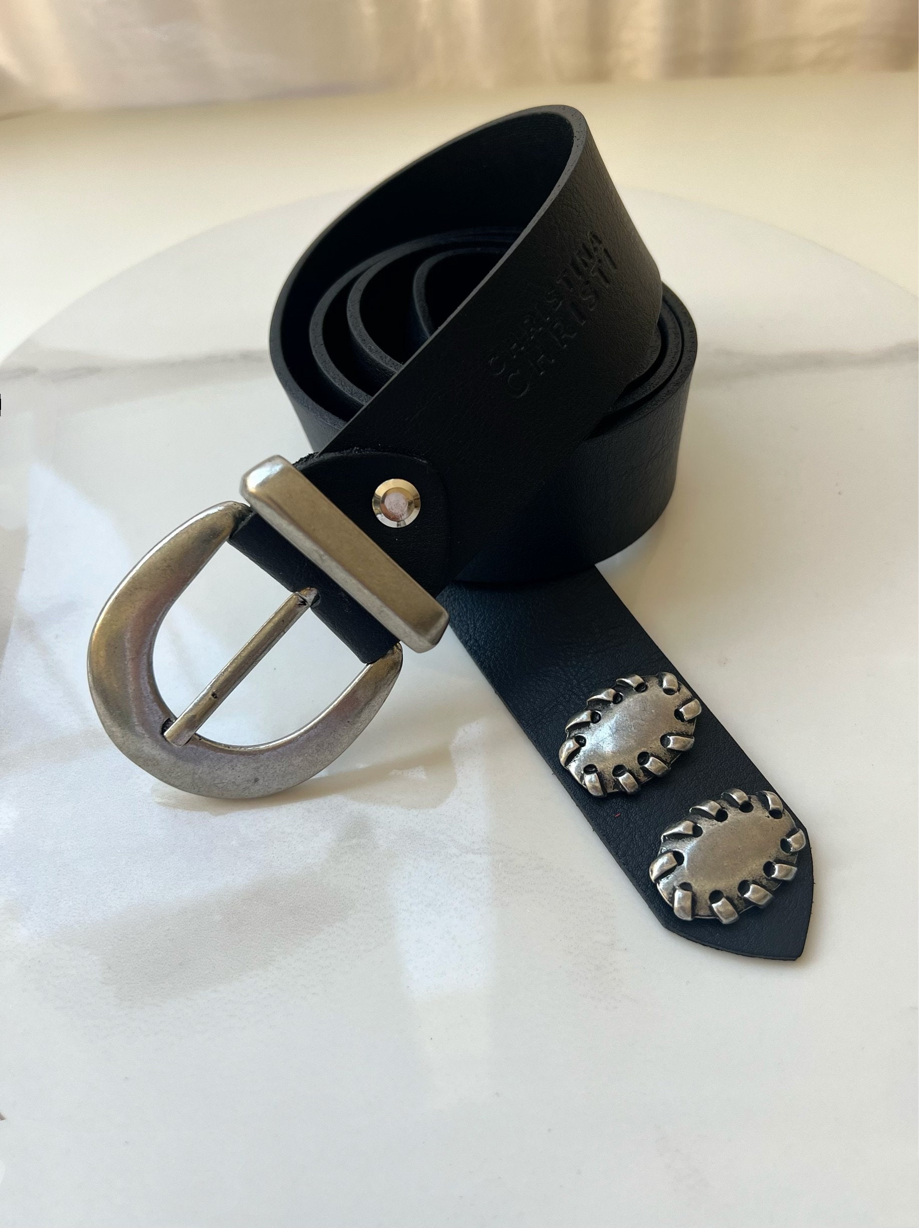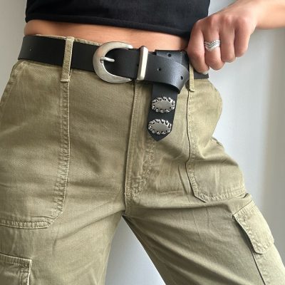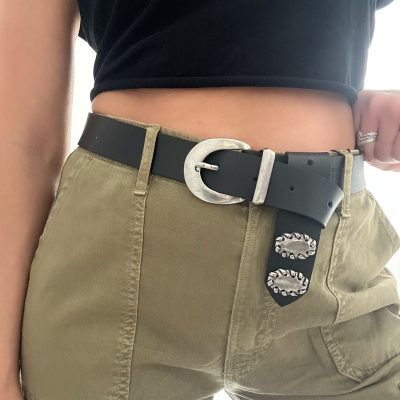 Be the first to review “Handmade Black Leather Belt Silver Buckle Women” Cancel reply